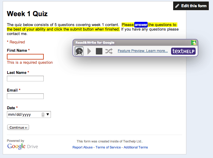 In last week’s post I talked about how easy it is to create Google Forms to evaluate progress and listed a few reasons why you may want to create one. In this post I will be taking things a step further by showing you how to make those forms more accessible… For free!